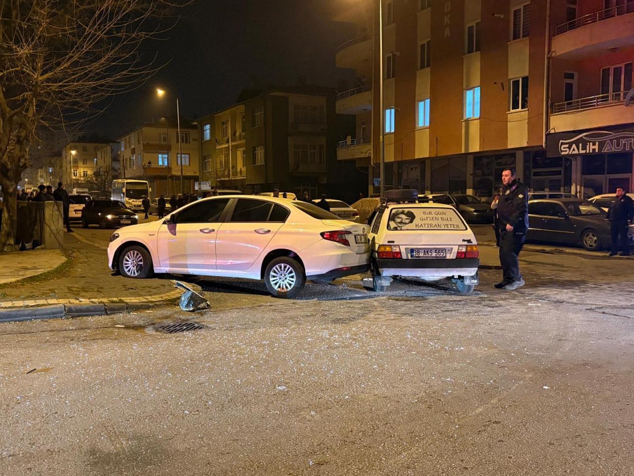 Kazada 38 AKS 565 plakalı otomobilin sürücüsü İ.Y. ve diğer otomobilde bulunan 1 yolcu ile 2 yaya yaralanırken, ihbar üzerine bölgeye polis ve sağlık ekipleri sevk edildi.