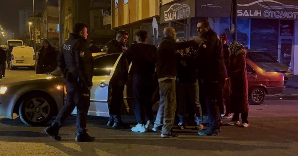 “Kızıma kim vurdu” diyen A.G.’yi polis ekipleri sakinleştirmeye çalışırken, A.G. kazaya karışan otomobilleri tekmeleyerek tepki gösterdi.