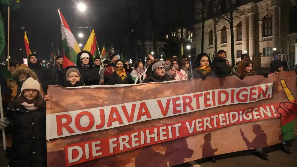 Viyana’da gerçekleşen bir eylemde Kürdistanlılar ve destekçileri, Rojava’ya yönelik saldırıları protesto etti. Heldenplatz’da toplanan kalabalık, Kürdistan Özgürlük Şehitleri anısına saygı duruşunda bulundu.